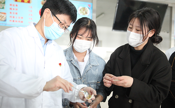 “同学,尝尝老师们包的水饺,生活、学习上有什么问题,要及时向老师反映”“生活挺好的,谢谢老师!”4月2日,学院党委书记孙晋东、副院长张艳在化学工程系、学生工作处负责同志陪同下,看望学院暂时封闭管理期间部分留校同学。