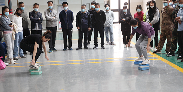 各系部师生分别组队参加比赛,在运球接力、搭桥运砖、蒙眼取物、爱心速递、水果大作战等十余个项目展开了激烈角逐。