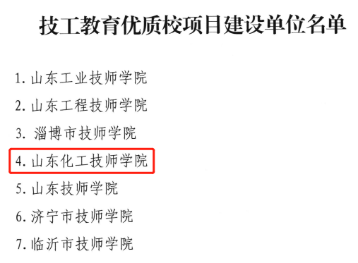 近日,山东省人力资源和社会保障厅印发《关于公布2022年度齐鲁技能大师特色工作站和技工教育优质校、优质专业项目建设单位名单的通知》,经单位申报、各市及省直有关部门推荐、专家评审和公示等程序,认定山东化工技师学院等7所院校为山东省技工教育优质校项目建设单位。