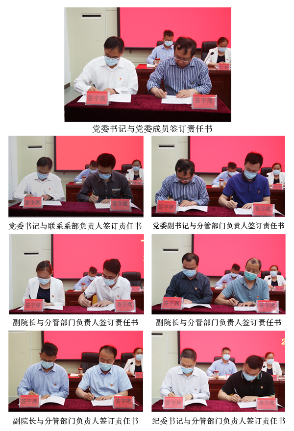 会上,张艳传达了省厅2022年党风廉政建设工作会议精神,苏友华传达了学院2022年党风廉政建设工作要点并就学院重点领域廉政问题专项整治工作进行部署安排。学院党委书记分别与党委成员,学院领导分别与分管部门、联系系部主要负责人签订了《2022年度全面从严治党责任书》。