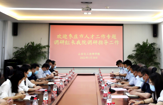 枣庄、滕州两级市委组织部有关负责同志,学院组织人事处、党政办公室、招生就业处、学生工作处、化学工程系、工业分析与检测系等相关同志参加调研和座谈。