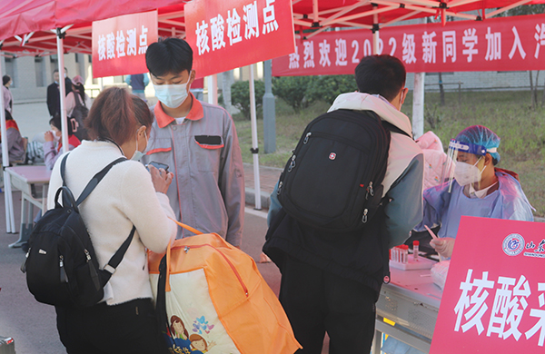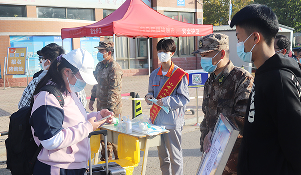 为坚决做好学院疫情防控工作,学院提前组织部署了多项严密措施,保障新生入学报到安全有序。新生提前在企业微信进行每天健康打卡,提交入校申请,通过审核后在校门口扫入校码,更换口罩,核验健康码、行程码、一人一案、共同居住人三码,扫场所码,现场测温,所有检测合格后方可入校。进入校门,所有同学须在接受核酸检测后再进行入学面试、入班、领取公寓化物品、入住宿舍等流程。
