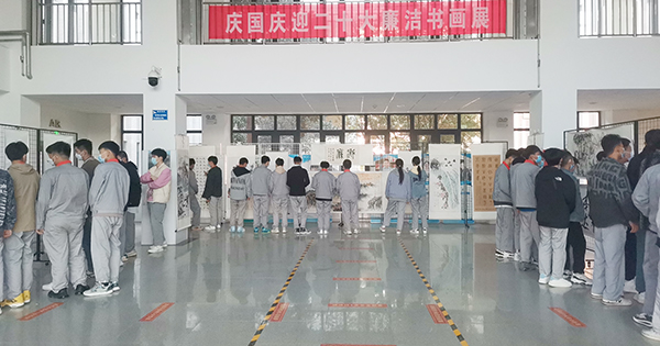 为进一步深化党史学习教育,深入推进学院党风廉政建设,营造浓厚的廉政文化氛围,形成崇尚廉洁的校园风气,树牢全院师生尊廉崇洁的坚定信念,在欢度新中国成立73周年、喜迎党的二十大召开之际,学院组织举办了廉洁书画作品展,书画展共收集师生书法、绘画等原创作品70余幅,并筛选出20余幅优秀作品进行了集中展览,各系部师生观看了书画展。