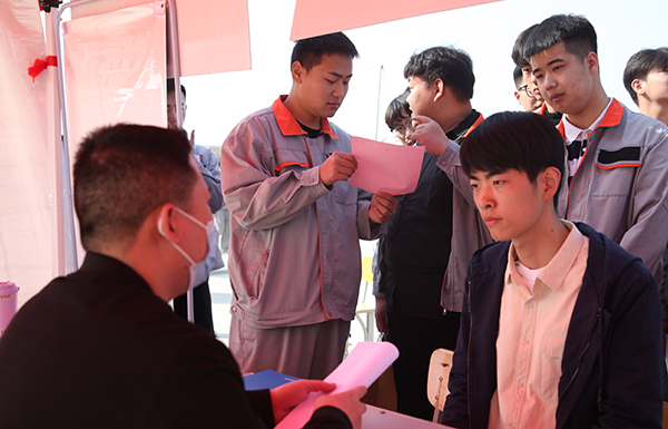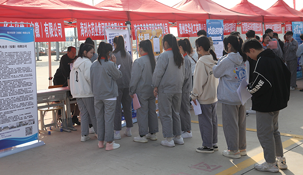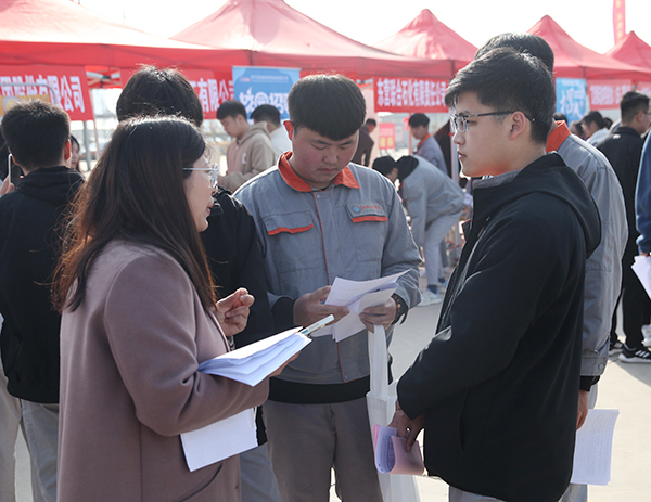 招聘会现场人头攒动,气氛热烈,秩序井然,用人单位诚意满满、求贤若渴;毕业生积极投递推荐表,自信阳光地向用人单位展示所学知识和本领,并同自己心仪的用人单位就工作内容、岗位职责、发展前景、薪资待遇等进行深入交流。据悉,来自鲁南高科技化工园区的上市企业联泓新材料科技有限公司等本地企业薪资待遇优厚,深受毕业生青睐;率团来校参加招聘会的东营市河口区人力资源和社会保障局副局长张建伟说,“看到本地企业优厚的薪酬待遇,倍感招工压力,我们东营地区的化工企业五险一金齐全,保底工资均在6000元以上,热烈欢迎各专业毕业生踊跃报名”。前来陪同毕业生参加招聘会的家长,听到这些介绍,也倍感振奋,“感谢学校组织优质企业送岗进校园,让学生在校内就能实现轻松选岗就业,很欣慰自己当初给孩子正确的求学选择”。