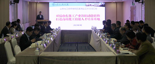 院长王庆杰在研讨会上致辞,王院长向与会人员介绍了学院坚持化工专业特色办学、面向化工服务社会等情况;副院长崔世玉代表学院分享交流了招生就业、校企合作、产教融合工作开展情况。