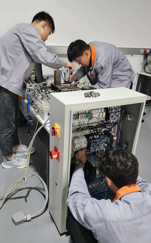在培训基地,莱茵科斯特专业培训师从工作计划、机械加工、电气配盘、气动安装、信号调试、专业谈话等环节,对同学们进行了有针对性的系统培训;同学们充分利用时间,认真学习,分组练习,交流讨论,及时总结,巩固成果,顺利完成了分配的各项学习任务,提高了职业能力。相信经过刻苦训练,中德国际合作班的同学们将收获理想硕果。