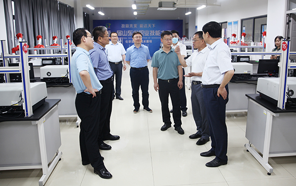 李士功一行实地视察学院高铁新区校区建设现场,参观世界技能大赛化学实验室技术项目中国集训基地、山东应急管理与安全生产实训基地、化工生产实训基地,并举行座谈会。