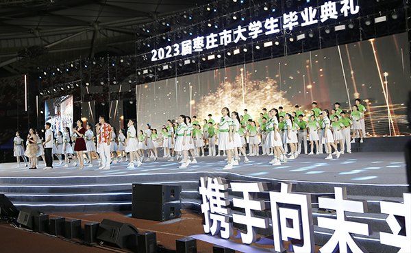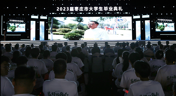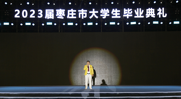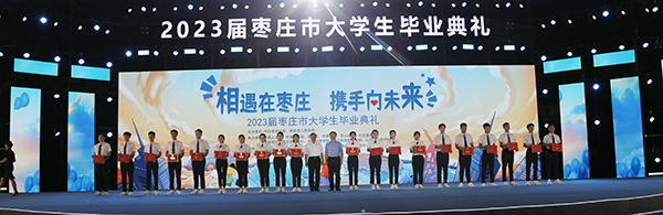6月16日,学院党委书记孙晋东、副院长陆洋,带领500余名优秀毕业生代表出席枣庄市委、市政府主办的“相遇在枣庄 携手向未来”2023届枣庄市大学生毕业典礼。