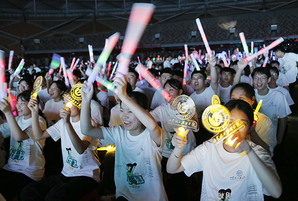 典礼晚会在“一起向未来”的音乐声中掀起高潮,我院学子呈现了精心排演的文艺节目歌伴舞《青春向太阳》、歌曲《星辰大海》,闪耀现场,充分展现了同学们昂扬向上的青春活力和对未来美好生活的憧憬,博得观众雷鸣般的掌声。