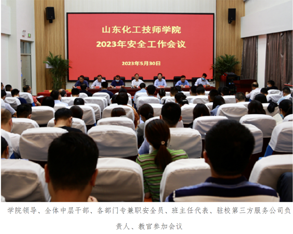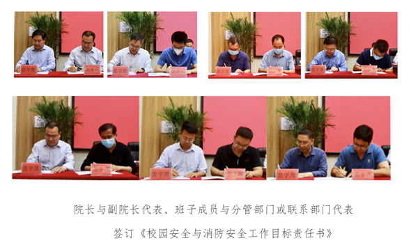 学院召开2023年安全工作会议,传达了学院2023年“安全生产月”活动方案,部署启动“安全生产月”活动。学院领导带头签订《校园安全与消防安全工作目标责任书》,增强安全意识,强化责任,提高重视程度,认真实施各项安全措施,抓实抓细抓牢校园安全各项工作,努力建设平安校园,确保学院安全稳定。