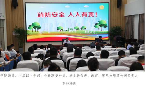 学院组织2023年“安全生产月”专项培训,滕州消防大队教导员、党委书记解军舰应邀作《提高消防安全意识 筑牢校园“防火墙”》 专题讲座,领导班子带头参加培训,提高了全体工作人员的消防安全意识和工作水平。