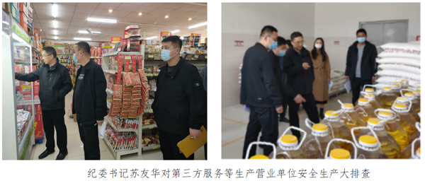 为切实加强安全生产工作,全力推进学院第三方服务等生产领域安全隐患大排查大整治行动,纪委书记苏友华和各支部纪检委员一起对两校区第三方服务公司进行“四不两直”检查,重点对餐厅和超市食品存放、价格、保质期、卫生、水电燃气安全、工作人员健康证等环节进行检查。检查人员根据检查内容进行打分,对检查中发现的问题要求立即整改。