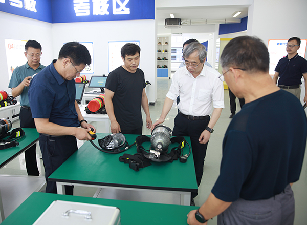 张龙一行实地调研观摩世界技能大赛化学实验室技术项目中国集训基地选手模拟训练现场,勉励备赛选手科学训练、坚定信心、全力备赛、再创佳绩。参观了山东省高端化工产业公共实训基地、山东应急管理与安全生产实训基地。