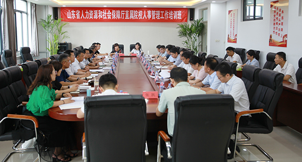 9月12日—13日,山东省人力资源和社会保障厅厅属院校人事管理工作培训班在学院高铁新区校区会议室开班。省人社厅人事处处长李博、副处长魏勇,事业单位管理处副处长钱屹,厅属院校分管院领导,学院党委书记孙晋东出席会议并致辞,厅属院校组织人事部门负责同志及相关业务负责同志参加会议,会议由厅人事处副处长魏勇主持。