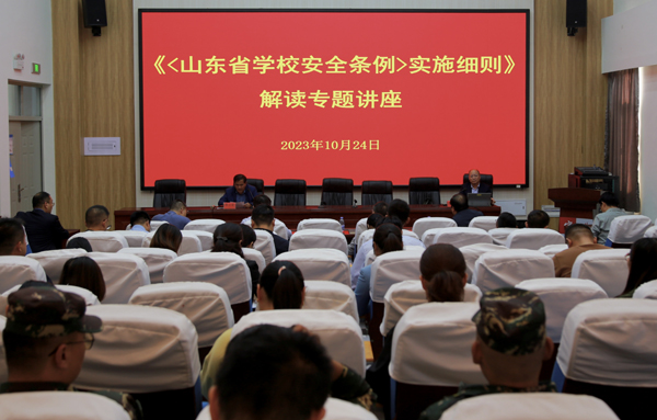 10月24日下午,学院举办《〈山东省学校安全条例〉实施细则》解读专题讲座,主会场设在高铁新区校区,分会场设在学院路校区。讲座特邀安全管理博士,山东省学校安全研究与教育基地主任,山东省校园安全首席专家、济南大学应急管理专业学科带头人邱玉敏担任主讲嘉宾。安全管理处处长李士宏主持会议。学院领导、中层干部、部门专兼职安全员、各系班主任、教官、第三方服务公司负责人参加会议。