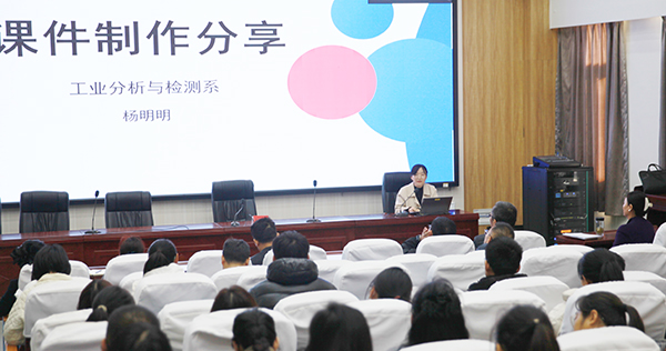 工业分析与检测系主任杨明明从主题与目标、形式与素材、页面设计、互动与交流四个方面分享了个人课件制作方法。