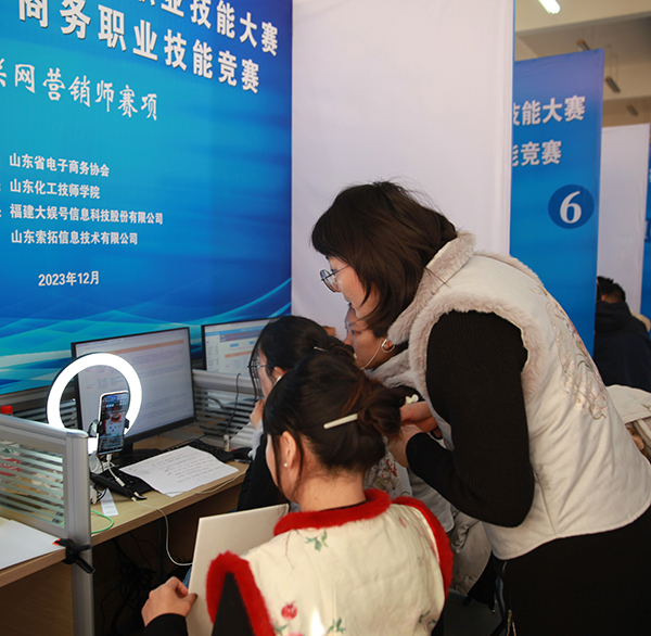 12月2日,我院承办的山东省“技能兴鲁”职业技能大赛——第五届电子商务职业技能竞赛互联网营销师赛项在学院路校区开赛,来自全省12所职业院校30支代表队,120余名参赛选手,分别参加了职工组和学生组直播前、直播中、直播后三个阶段竞赛的决赛。
