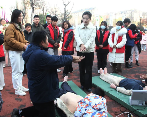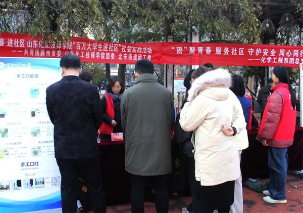 12月3日,学院团委联合共青团滕州市委、北辛街道团工委,组织青年师生在滕州市民广场参加“百万大学生进社区”志愿服务活动。