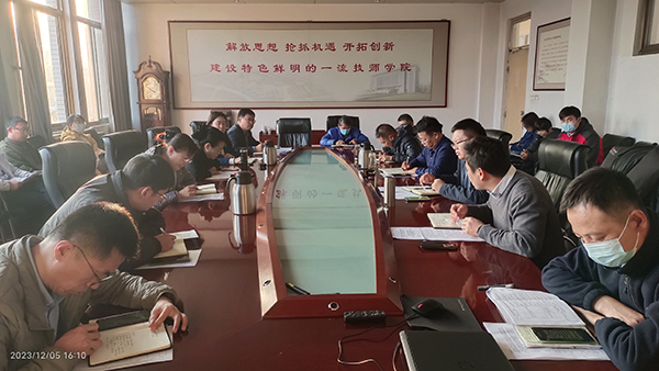 12月5日,我院在学院路校区会议室召开教学工作例会。副院长崔世玉出席会议并讲话,教务处、教研督导处、各系部主要负责人参加会议,教务处处长任永胜主持会议。