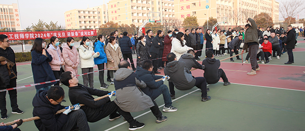 1月4日-5日,我院教职工2024年“庆元旦 迎新春”拔河比赛在学院路校区举行,各分工会分别独立组队或联合组队参加比赛,共有9支代表队150余人参加比赛。学院领导孙晋东、苏军生、陆洋、张继宏、崔世玉、苏友华,全体教师现场观看比赛。