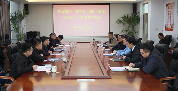 1月16日,龙口市委常委、组织部长姜利春,市委常委、副市长常海亮,组织部副部长、人社局局长迟丰德,组织部人才办主任李森、人社局人才开发科科长王伟一行来学院调研交流,学院领导孙晋东、陆洋、崔世玉在高铁新区校区接待到访客人并座谈。