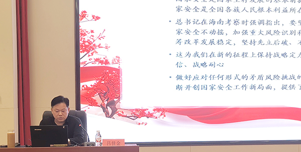 吕佳金以《美好生活 法律相伴》为题,分别从国家安全重点领域、学生常见违法犯罪类型、不良行为边界、校园安全防范、国家安全法定义务等方面,以法理结合实际案例,讲述了政治、军事、经济、社会等国家安全重点领域知识,明确了学生不良行为与严重不良行为的边界,解析了防欺凌、防诈骗的实用方法,并结合聚众斗殴、故意伤害、校园欺凌、帮信罪等典型违法犯罪案例分析,引导学生树立法治观念,从自身做起防范安全风险,自觉履行维护国家安全义务。
