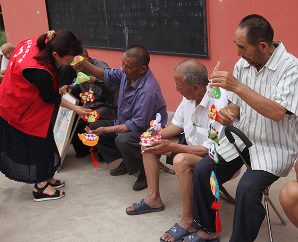 在敬老院,师生志愿者携带自费购买的洗化用品、米面油等生活用品,粽子、学生手工作品送给了住在公寓的老年人,大家同老人们促膝交谈,祝愿他们身体康健,享受当下美好的生活。教育与公共服务系的同学现场为老人表演了文艺节目,合唱《我和我的祖国》让老人们感慨万千,民族舞蹈《欢庆时节》、《金色的太阳》、《月光下的凤尾竹》赢得了现场阵阵掌声,平日安静的老年公寓充满了欢声笑语。