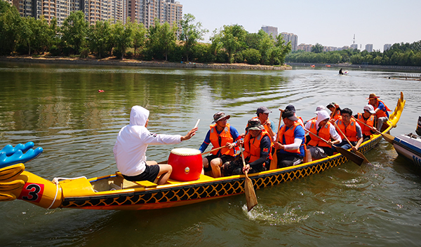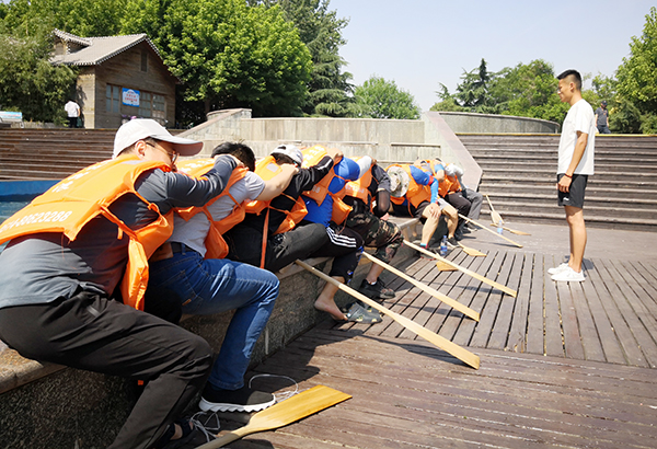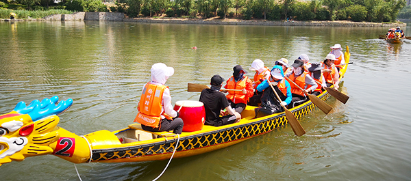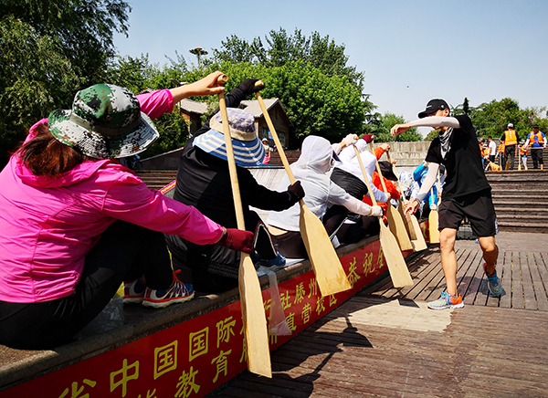 为参加2019 “纵横江湖”山东省城市龙舟对抗赛,6月11日,学院选派28名教职工组成男、女两支代表队,在滕州市荆河东岸小邾国故城码头开始赛前集训。