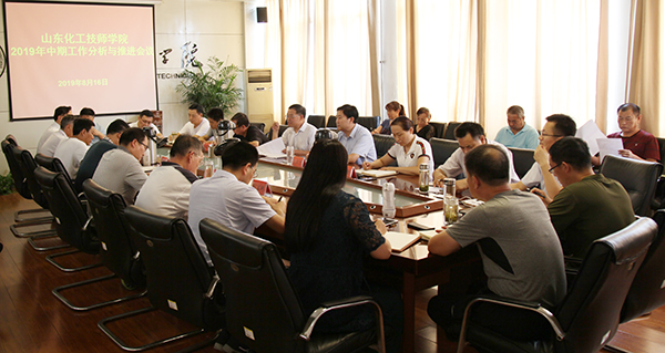 8月16日,学院在学院路校区召开2019年中期工作分析与推进会议,学院领导孙晋东、王庆杰、苏军生、张艳、张继宏、崔世玉出席会议,中层正职及以上干部参加了会议,会议由党委书记孙晋东主持。