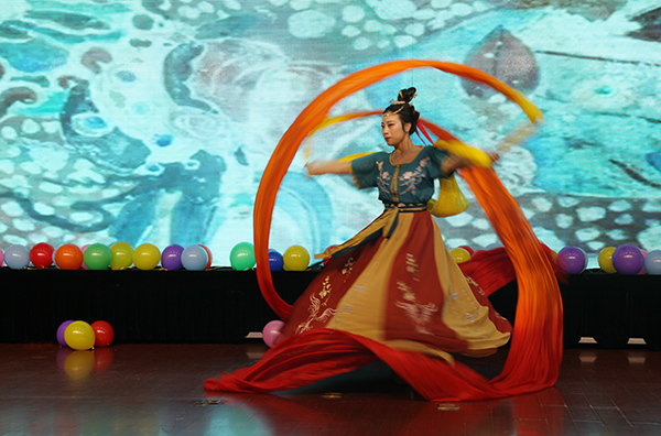 联欢会现场欢声笑语,高潮迭起,掌声不断,合唱《我和我的祖国》拉开联欢的序幕,异彩纷呈的节目,伴随着欢快的音乐,跳动的音符,争相上演,合唱《我们都是追梦人》《我们的生活充满阳光》《相亲相爱》《敢问路在何方》《绒花》《我们走在大路上》《强国一代有我在》《中国》,唱出了老师们满满的正能量;舞蹈《追梦青春》动感热烈,《大梦敦煌》唯美动人,相声《猜灯谜》诙谐幽默,诗歌朗诵《中国梦 化院梦》,是对技能成就梦想的向往,器乐合奏《华山论剑》《世间始终你好》《吉他弹唱》,多才多艺的表演,赢得现场欢呼声不断,歌伴舞《桥边姑娘》,生动再现了网红曲目,三句半《还夸咱学院》,说出了教师对学院发展的美好期待。歌声、掌声、笑声,其乐融融,大家尽情地挥洒激情,活跃气氛,抒发对美好的祝福,对未来的向往,集中展现了我院教职工多才多艺,积极进取、昂扬向上的新时代精神风貌。