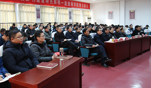 1月20日,我院在学院路校区报告厅召开“不忘初心、牢记使命”主题教育总结大会。省人社厅二级巡视员、主题教育第一巡回指导组副组长、厅直属机关党委专职副书记梁万里,省人社厅党组第一巡回指导组成员、职业能力建设处副处长程黎,学院领导孙晋东、王庆杰、苏军生、张艳、张继宏、崔世玉出席会议,中层及以上干部、全体党员参加会议。会议由党委书记孙晋东主持。