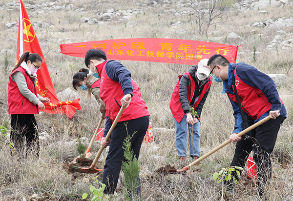 阳春三月,植树护绿正当时, 3月29日,学院团委积极响应共青团枣庄市委“我为家乡多植树 绿化美化新枣庄”义务植树活动的通知精神号召,组织学院各系部团支部书记等青年教师志愿者赴滕州市柴胡店镇葫芦套影视基地参加了活动。