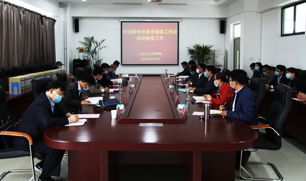 4月26日,我院迎接2020年春季复学条件核验工作在高铁新区校区举行,滕州市人社局、教体局、疾控中心、市场监管局专家组成的滕州市复学条件核验组对我院复学工作进行了核验。学院领导孙晋东、王庆杰、苏军生、张艳、张继宏、崔世玉向到会专家介绍了我院复学核验的各项准备工作,并陪同核验。