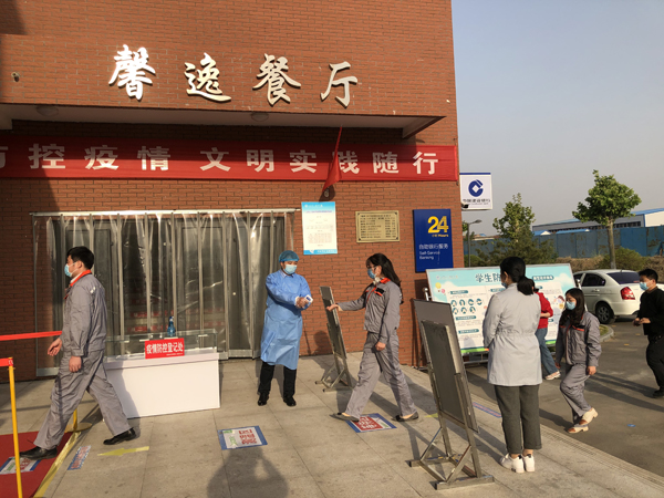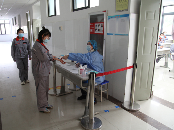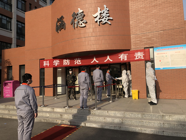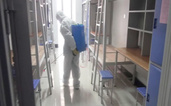 按照错峰返校、分批报到的原则,提前通知返校学生,到校门口送学生车辆即停即走,在入校通道按要求保持1.5米间距排队,佩戴口罩进入校门,工作人员逐一检测体温、核验证件、对学生行李按照男女生分开集中存放消杀、集中运送至宿舍存放点,学生更换口罩,进行手部消毒后,进入校园。期间,一旦发现体温异常,即启动疫情应急处置,引领到校门口临时留观室,后勤消杀组及时对发现异常体温学生区域进行及时消毒消杀。
