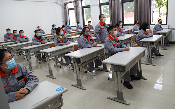 教学楼入口设警戒隔离带,张贴黄色标识线,放置消毒脚垫,每楼层设置教室、备用教室、留观室,学生进入教室一律佩戴口罩,有序排队,间隔1.5米在班级门口测温点,由班主任进行晨、午、晚测温后进入教室,师生一律佩戴口罩,实行每班不超过30人,单人单桌,相互之间保持1.5米间距就坐。