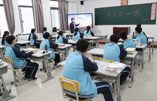 各班级班主任老师精心准备了第一次班会,给同学们讲了开学第一课。建议同学们踏进校园后,收回懒散,揣好自信,收起玩闹,努力向前,冲向梦想的彼岸。