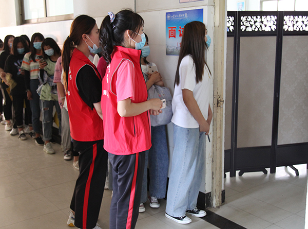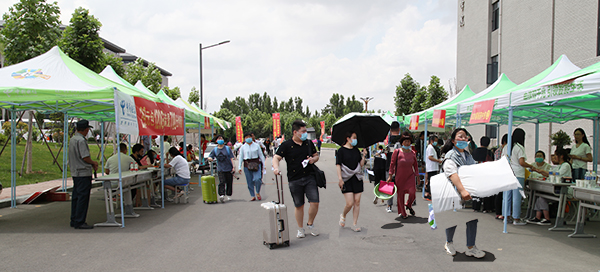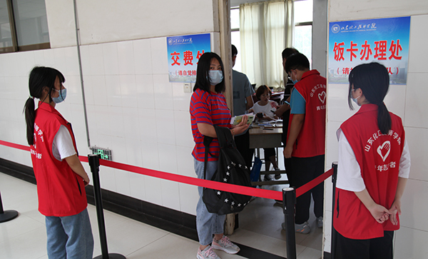 为便捷新同学的报到流程,学院各部门通力合作,开设新生报到绿色通道,新同学在志愿者的带领下,查询班级、班级报到、安排宿舍、面试、扫码交费、领取公寓化物品,校内专车接送至宿舍。一站式入校,让在初夏时节来送学生的家长感到满意、舒心,新同学们也感到新校园“家”的温馨。