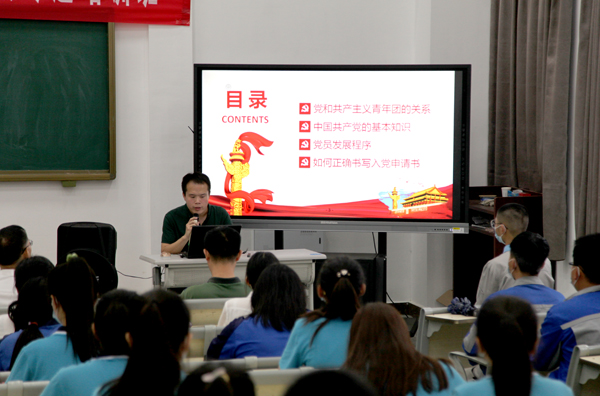 徐传广从党和共青团的关系、党的基本理论知识、党员发展程序和正确书写入党申请书四个方面进行了培训。课件和视频相结合,生动形象地向大家介绍了党的基本理论知识和入党前准备工作、基本条件等。参加培训班的优秀团员组织有序,精神饱满,全程认真听讲并做好了笔记。
