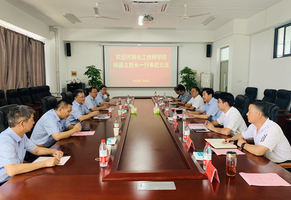 7月6日,河南化工技师学院院长杨箴立一行五人来我院参观交流。学院党委书记孙晋东,院长王庆杰、副院长崔世玉在高铁新区校区接待到访客人并座谈。