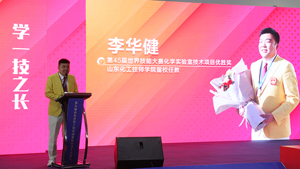 第45届世界技能大赛化学实验室技术项目优胜奖得主李华健作了精彩演讲,向与会嘉宾、考生及家长分享了选择技工学校学习技能,经过努力学习、扎实训练和多次省赛、国赛的锻炼,一举夺得第45届世界技能大赛化学实验室技术项目全国选拔赛冠军,并代表中国出征喀山,获得世赛优胜奖,技能成才的心路历程。