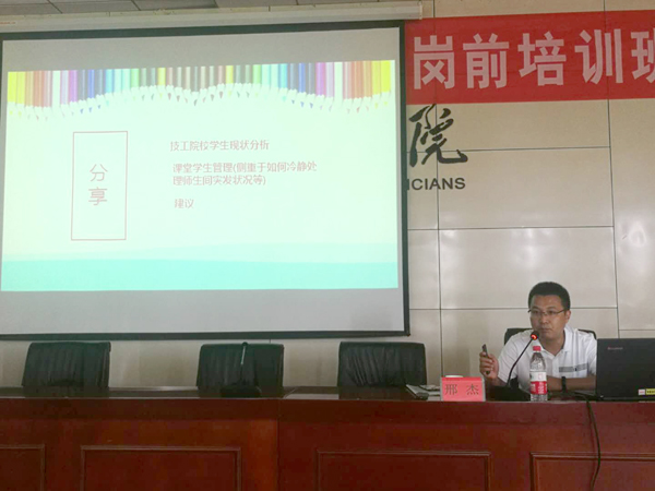 集中培训期间,副院长崔世玉、教研督导处处长朱景洋、德育工作处处长许芝平、教务处副处长仇文卿、教研督导处副处长李厚强、学生工作处副处长邢杰就分别从师德师风建设、教师工作基本要求、教学常规工作、课堂及班级管理、教育教学研究、一体化课程教学设计、团队合作与执行力训练等方面对新教师进行了集中培训。