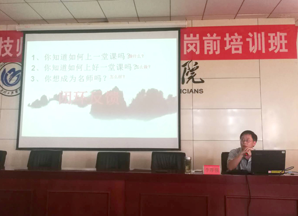 本次培训班共有三个环节,第一环节为为期三天的集中培训,第二环节为为期两天的系部培训,主要有院系特色文化与管理,指导新教师备课、编写教案以及组织新教师在系部内试讲,第三环节为教研督导处组织新教师进行院级教学基本功的交流、展示。