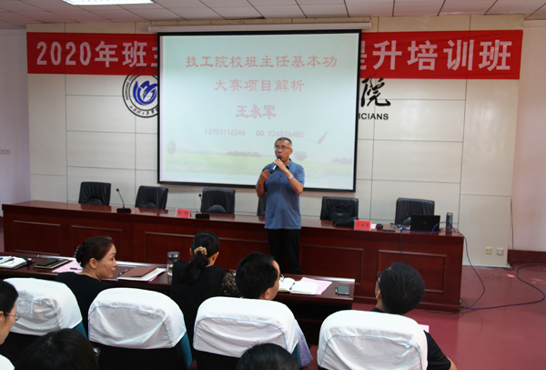 培训班由教育部国培计划优秀讲师、全国优秀班主任王永军教授主讲。第一阶段培训以“大学之道,在明明德,在亲民,在止于至善”为切入点,对班主任基本功的内涵与内容、班主任基本功大赛做详实介绍。第二阶段培训以“职业院校特色德育活动创新与策划”为重点,运用实际案例向全体班主任讲述走进学生营造德育氛围、家校沟通谋求德育实效、事件营销提升德育魅力、巧借资源扩大德育影响和社会宣传树立德育品牌等。王教授以生动的案例、诙谐的语言,深入浅出的将德育活动策划方式方法传授给了大家,吸引了现场教师们的共鸣和炙热的求学目光。第三阶段培训由来自各系部6名2019年度优秀班主任代表做经验交流。他们结合自身工作从习惯养成、班风建设、班干部培养、家校配合、常规管理等方面谈了各自在班级管理中的点滴做法。