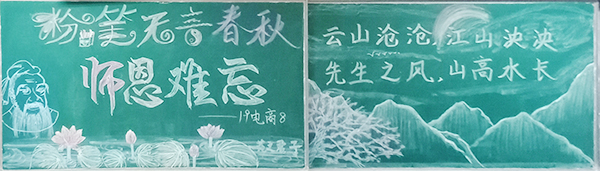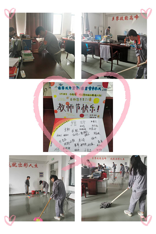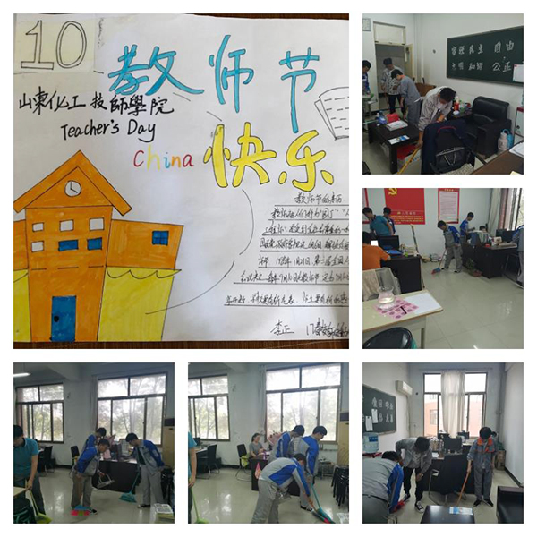 各系部组织学生开展了各具特色的教师节庆祝活动,营造了尊师重教的浓厚氛围:学生工作处开展了教师节主题板报设计制作和评选活动,展现了各专业学子的风采和班级文化氛围;夹道欢迎仪式迎接来上课的教师,给教师送上美好的节日祝福;开展我为教师做服务活动,组织学生深入教师办公室,协助教师开展卫生大扫除,美化办公环境;组织学生编排诗歌朗诵、歌唱、乐器演奏,谢师恩;富有创意的《听我说谢谢你》“快闪”;朋友圈、班级群祝福留言,线上线下,鲜活时尚的真情实意向教师节献礼,给老师们送上诚挚的节日祝福。