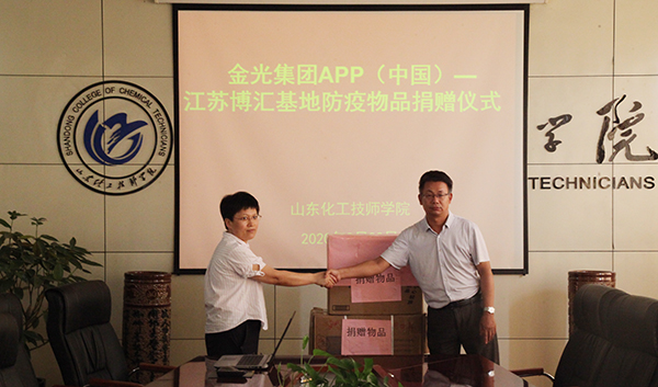 9月22日,爱心企业金光集团APP(中国)——江苏博汇基地企管处处长金翠红一行三人来我院洽谈校企合作事宜,并向我院捐赠10000只医用外科口罩,以实际行动助力我院新学期复课复学和常态化疫情防控工作。