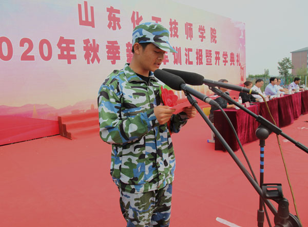 院长王庆杰在讲话中代表学院欢迎2020级秋季新同学,面对新校园、新学期、新生活,向他们提出三点要求。一是坚定信心,勤学苦练,勇攀技能高峰。当前,全社会正在弘扬劳动光荣、创造伟大、技能宝贵的时代风尚,中国智造、大国工匠已成为时代主旋律,职业教育迎来了历史最好的黄金期。我院李华健同学获得第45届世界技能大赛化学实验室技术项目的优胜奖,极大地提升了学院的知名度和影响力。希望同学们结合自己所学专业,确立自己的理想和明确的人生目标,珍惜时光,勤奋好学,坚持不懈,成就精彩人生,成长为对国家、社会有贡献的新时代大国工匠。二是从自身做起,积极践行社会主义核心价值观。“少年智则国智,少年强则国强”,树立正确的价值观是我们当代学生的使命所在,大家要自觉将社会主义核心价值观,不仅要学会学习、学会做事,更重要的是学会做人。受表彰的唐岩同学,就是大家身边的榜样和典范。希望同学们向他学习,从自身做起,从小事做起,争做社会主义核心价值观的崇尚者和践行者。三是继续发扬军队的优良传统和作风,把军训中养成的良好作风保持下去。在今后的学习生活中要高标准,严要求,尊敬老师,团结同学,严格遵守学校各种规章制度,互相帮助、团结友爱,做文明学生。