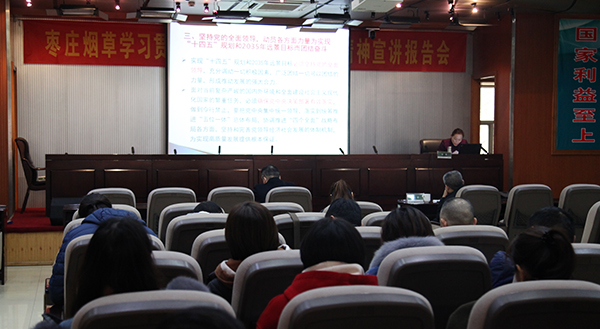 为深入学习宣传贯彻党的十九届五中全会精神,根据枣庄市机关工委的统一安排,12月1日-2日,枣庄市委机关工委党的十九届五中全会精神宣讲团成员、山东化工技师学院党委委员、副院长张艳先后为学院和枣庄市烟草专卖局的党员干部作了学习贯彻党的十九届五中全会精神专题宣讲报告。
