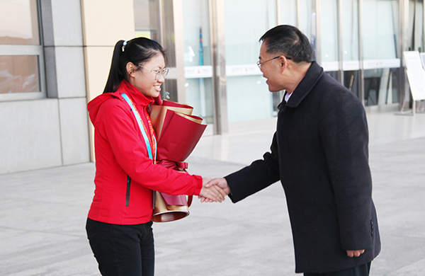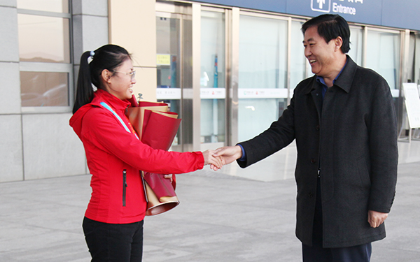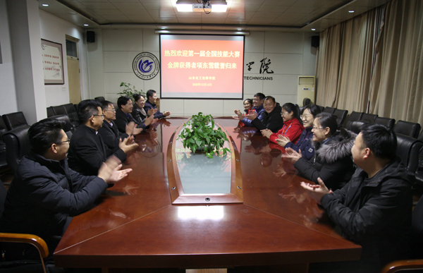 12月14日,出征第一届全国技能大赛并勇夺化学实验室技术金牌的项东雪凯旋归来,学院党委书记孙晋东、院长王庆杰、副院长崔世玉,党政办公室、宣传部、教务处等部门负责人到滕州市高铁东站迎接项东雪及化学实验室技术竞赛教练团队。