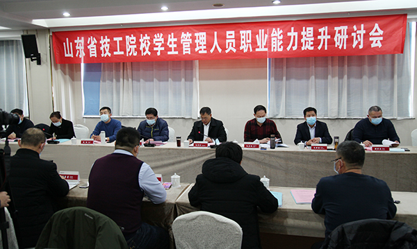12月18日-19日,山东省技工院校学生管理人员职业能力提升研讨会在我院举行。因疫情防控需要,本次会议采用了线上线下同步进行,山东省职业技能鉴定指导中心主任崔京建,学院党委书记孙晋东、副院长张艳出席会议,山东省学生管理中心教研组成员单位、兄弟院校学生管理负责人参加会议,全省学生管理中心教研组成员单位、兄弟院校学生管理工作人员线上聆听会议。会议由学院副院长张艳主持。