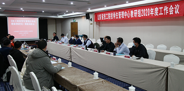 期间,学院学生工作处处长李怀亮主持召开山东省学生管理中心教研组2020年工作会议,汇报了教研组成立以来的开展的各项工作和取得的成绩,并就山东省级研究课题《技工院校学生应急管理案例研究》进程进行了调度,与会代表分别就学生管理队伍建设、班主任培训、学生工作情怀、班主任技能大赛、班主任工作激励机制、院系二级学生管理机制等关心的问题进行了热烈研讨。